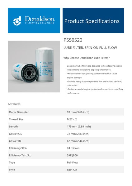 Why Choose Donaldson Lube Filters?Donaldson lube filters are designed to keep today’s engine lube systems functioning at peak performance.