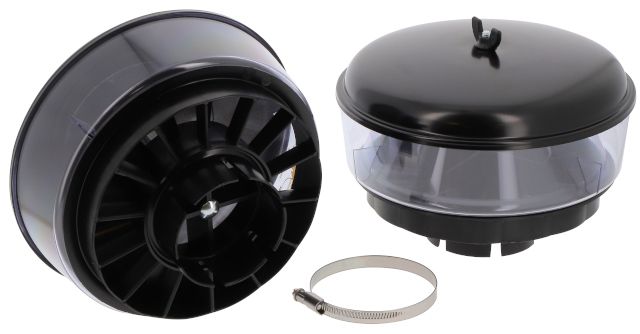 • Centrifugal force in bowl separates up to 75% of incoming dust before it enters an engine air intake system.