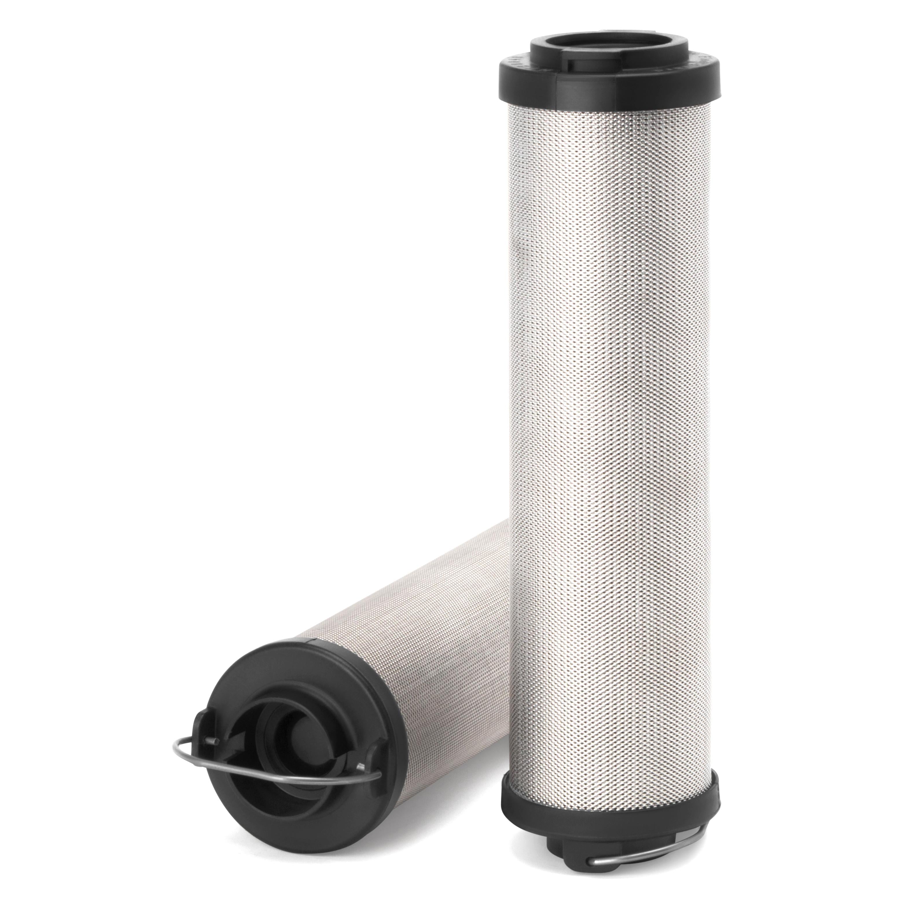 The efficiency of the element is shown using the Micron (µ) and Beta (β) ratings. The micron rating indicates the size of the particle being filtered and the beta rating the efficiency, calculated as 1/β.