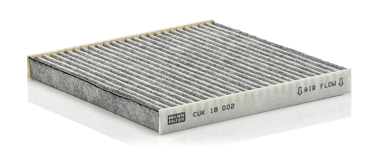 High-quality MANN-FILTER cabin filters with active carbon - nearly 100% protection from particles like pollen, diesel soot & tyre abrasion / Additional protection from harmful gases & unpleasant odour. The trated highly-effective activated carbon gives protection against harmful gases such as ozone, nitrogen oxide or sulphur dioxide and eliminates unpleasant odours during the entire service interval.