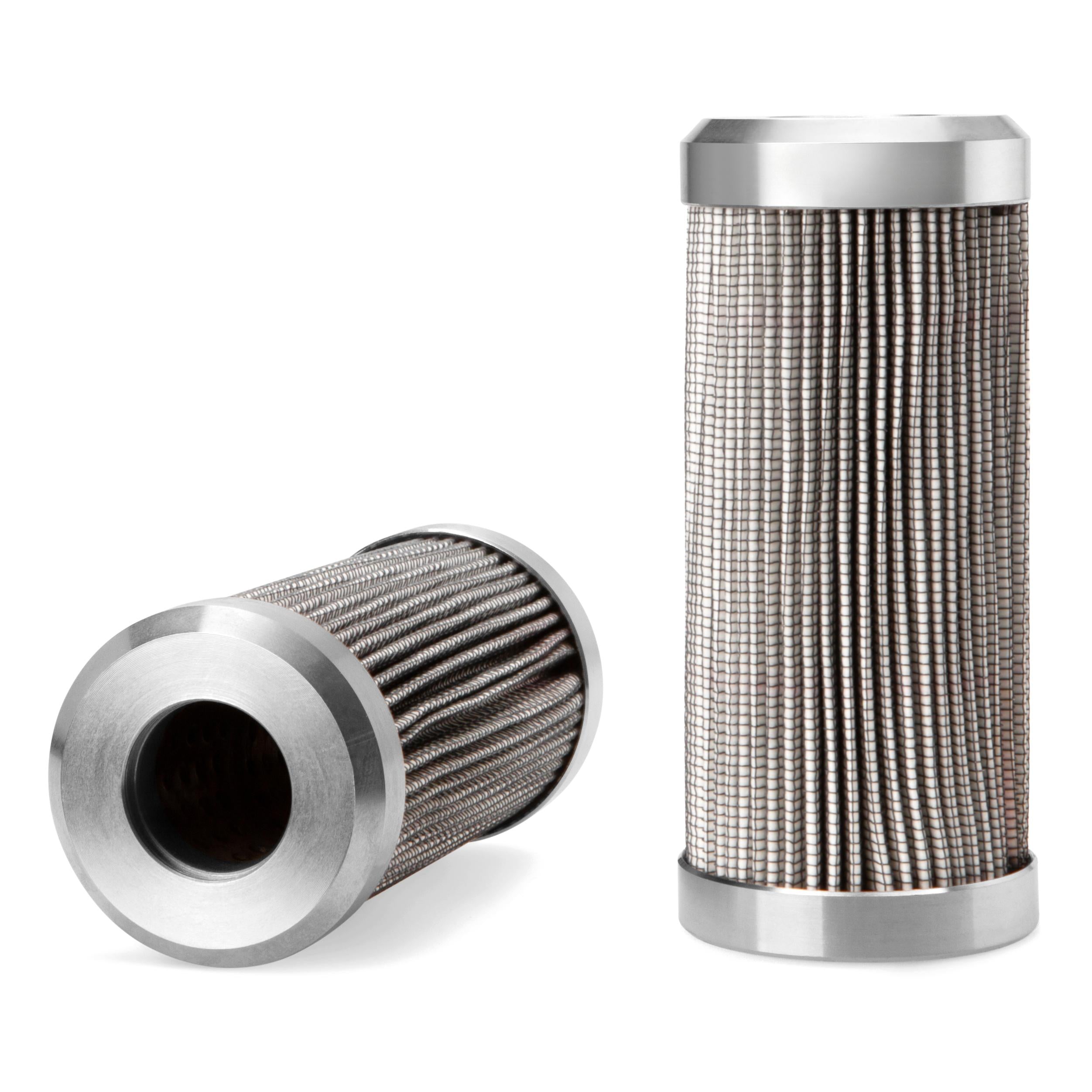 The efficiency of the element is shown using the Micron (µ) and Beta (β) ratings. The micron rating indicates the size of the particle being filtered and the beta rating the efficiency, calculated as 1/β.