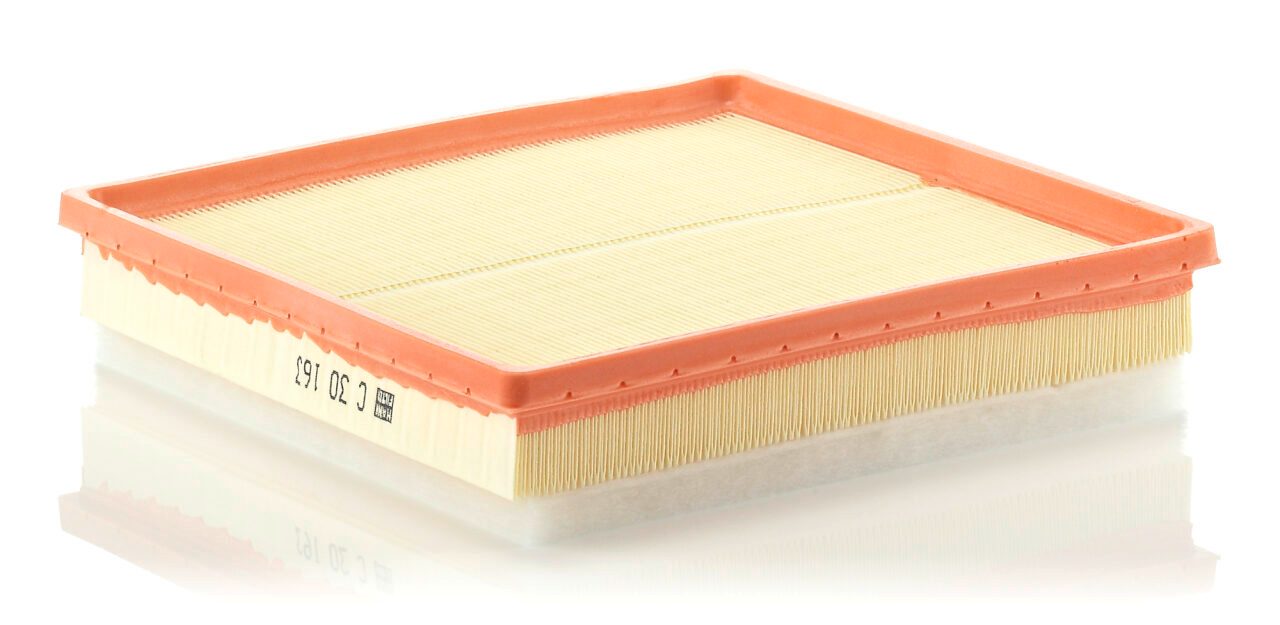 High-quality MANN-FILTER air filters for clean air intake and optimum protection for your engine, mass air flow sensor & other sensitive components / They meet requirements of modern engine technology. Highest dirt holding capacity and dirt separation efficiency, low flow resistance and high pleat stability ensure functional reliability during the entire service interval.