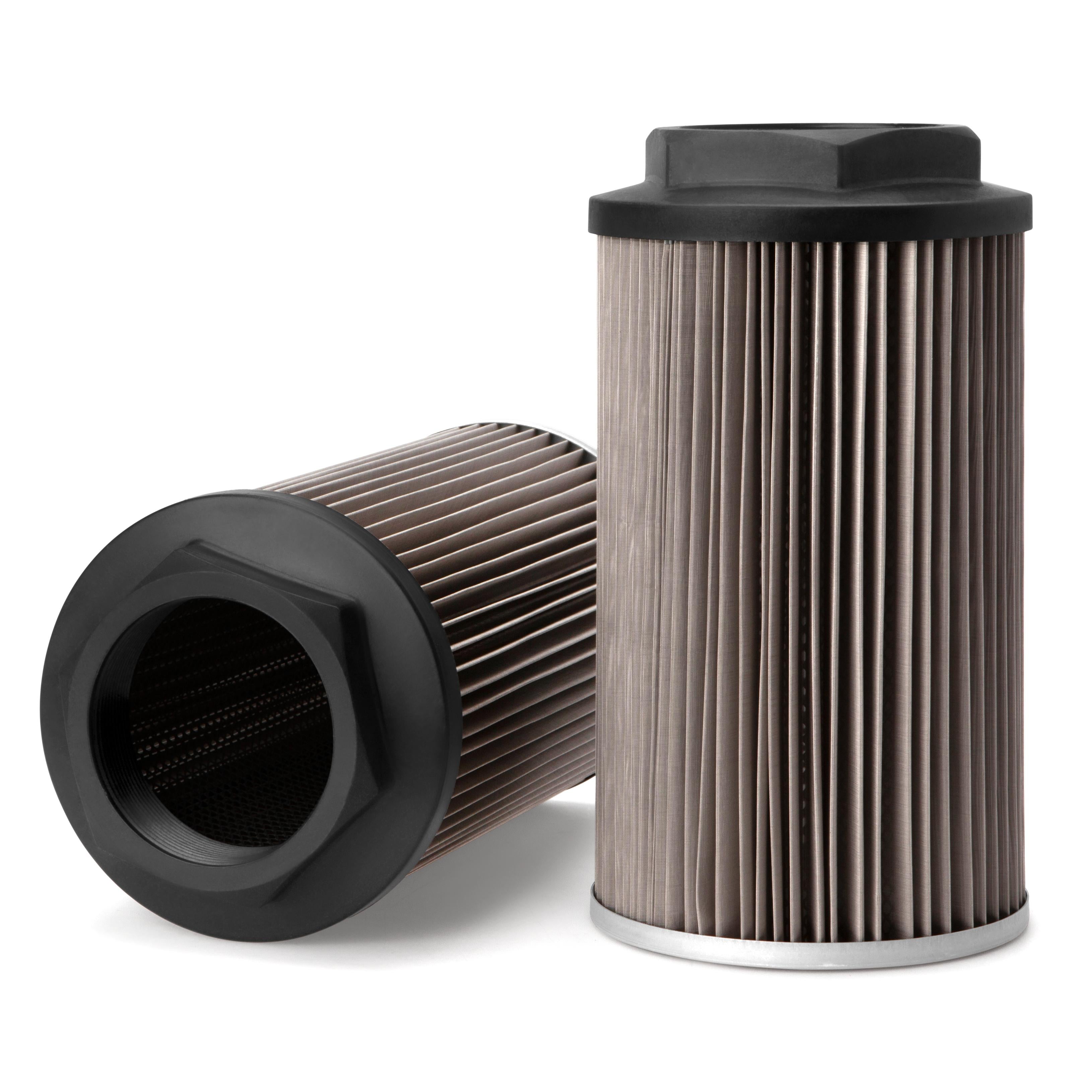 The efficiency of the element is shown using the Micron (µ) and Beta (β) ratings. The micron rating indicates the size of the particle being filtered and the beta rating the efficiency, calculated as 1/β.